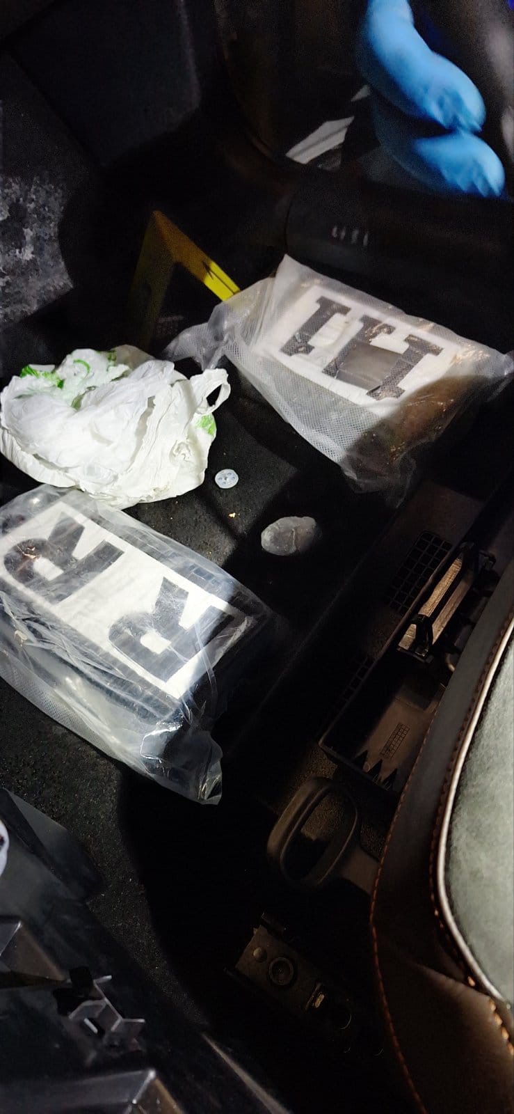 U vozilu marke Seat Cupra, kojim je upravljao B.S. (1997.) iz Bihaća, pronađena su dva veća paketa bijele praškaste materije koja asocira na kokain (procijenjeno oko 2 kg), kao i dva manja paketa sa suhom zelenom materijom koja asocira na cannabis sativa. Drugo vozilo, VW Golf, kojim je upravljao A.A. (1983.) iz Bihaća, a u kojem se nalazio suvozač A.D. (1993.) iz Bihaća, također je podvrgnuto pregledu.